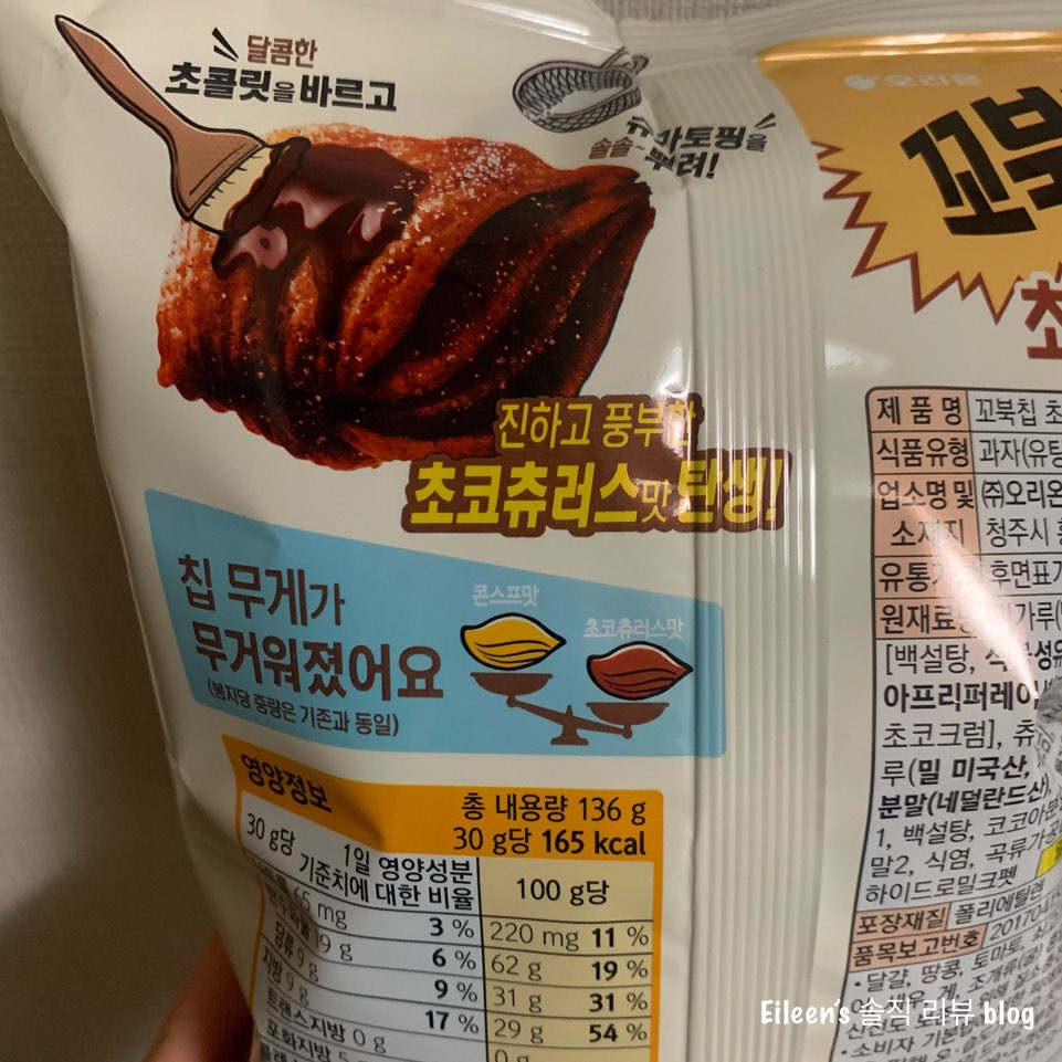 초코츄러스맛 칼로리는 30g당 165kcal이랍니다!