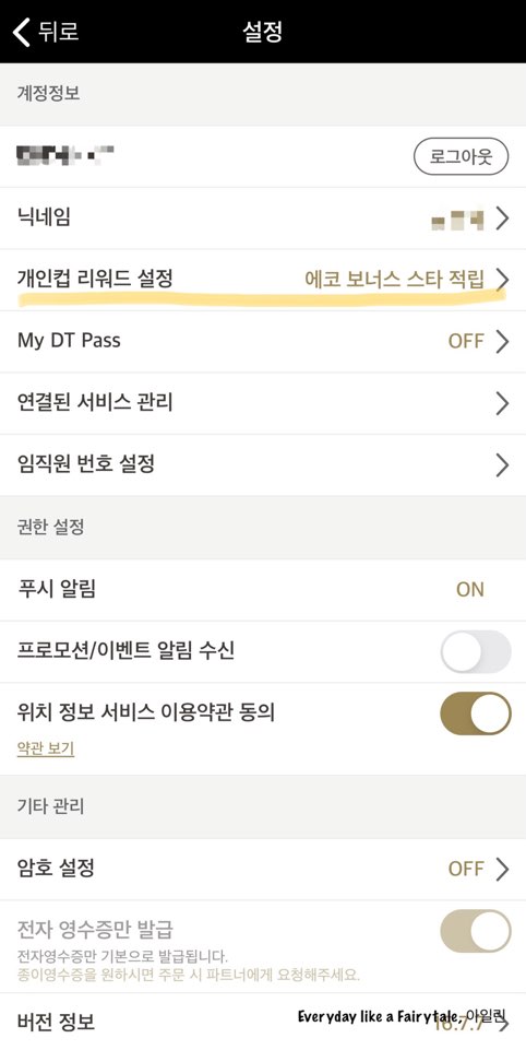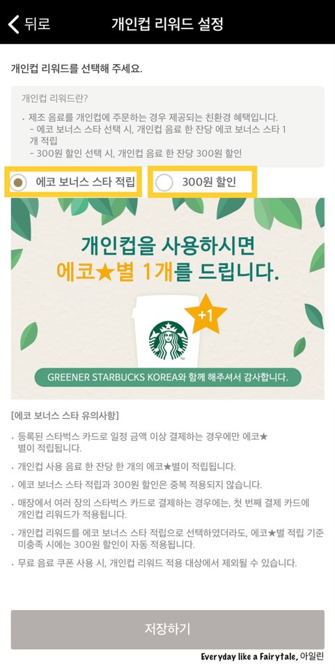 4. "개인컵 리워드 설정"에서 에코 보너스 스타 적립