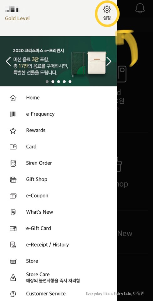 3. 설정에 들어가셔서 "개인컵 리워드 설정"이라는