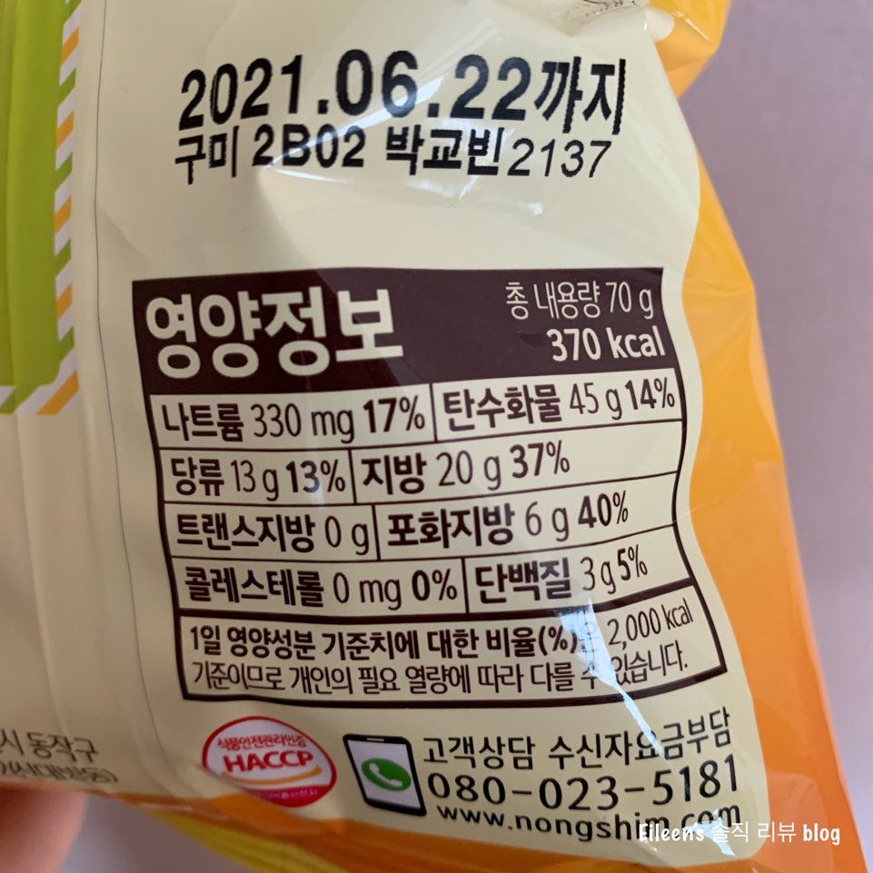 총 내용량은 70g이며, 칼로리는 370kcal!!