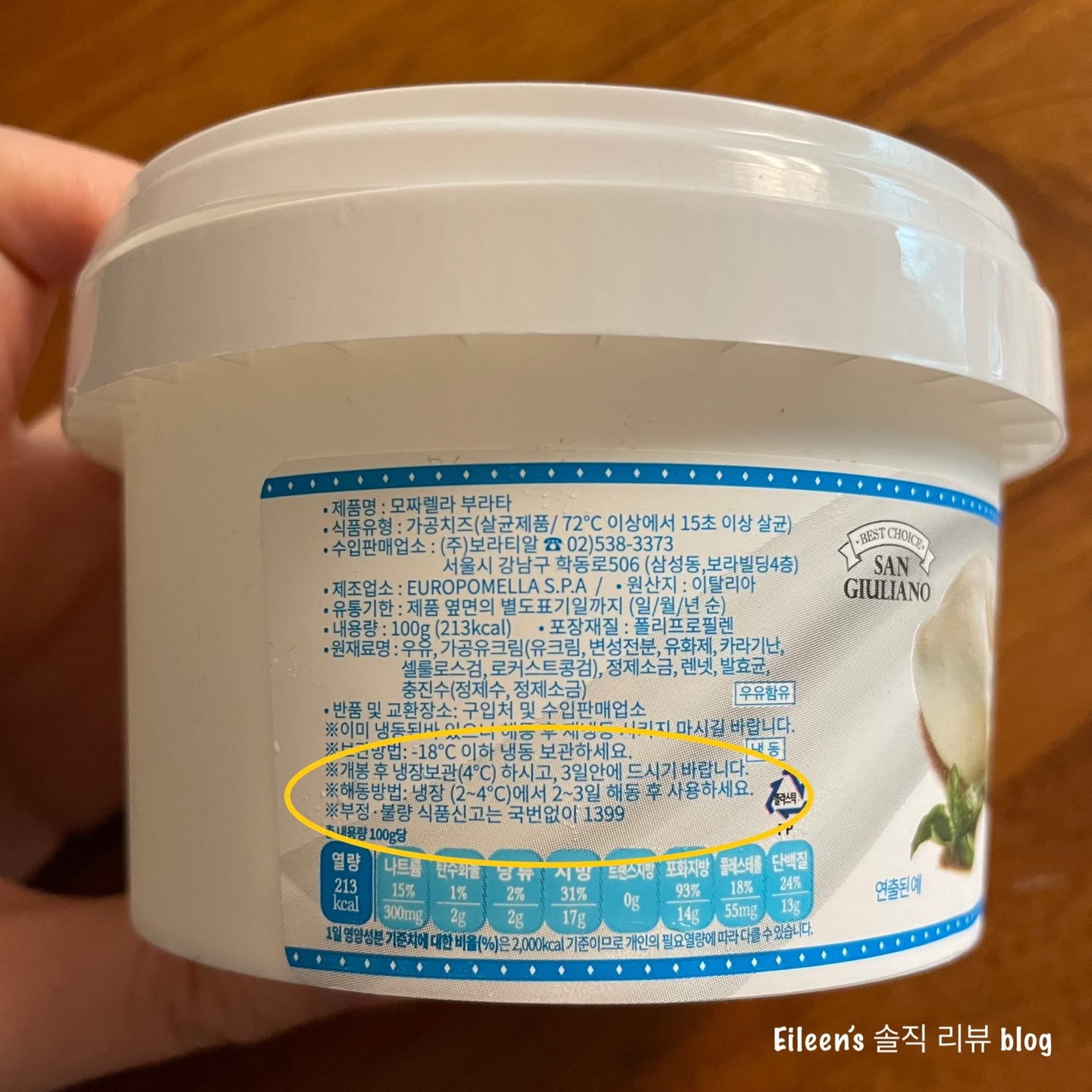 제가 구매한 이탈리아산의 유로포멜라 부라타 치즈는