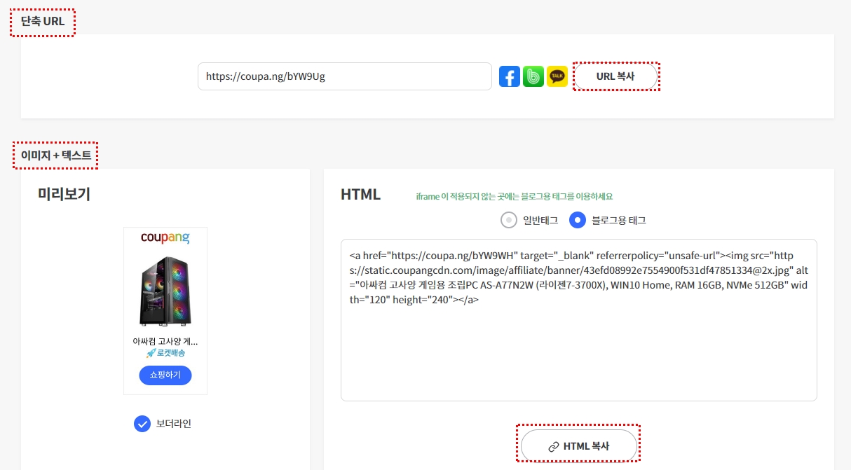 1) 쿠팡 파트너스 링크를 블로그에 삽입해서