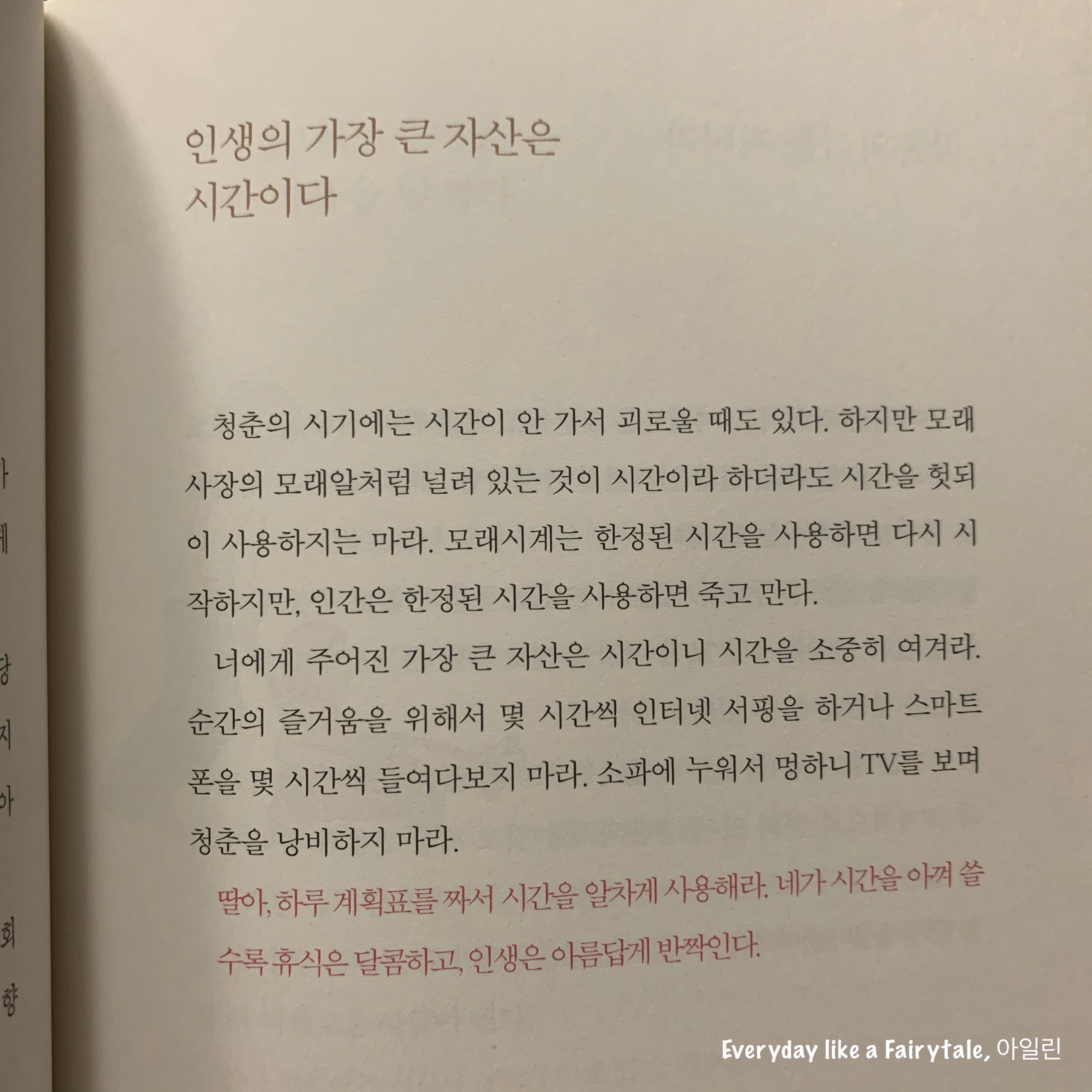 인생을 어떻게 살면 좋겠냐고 묻는 딸에게