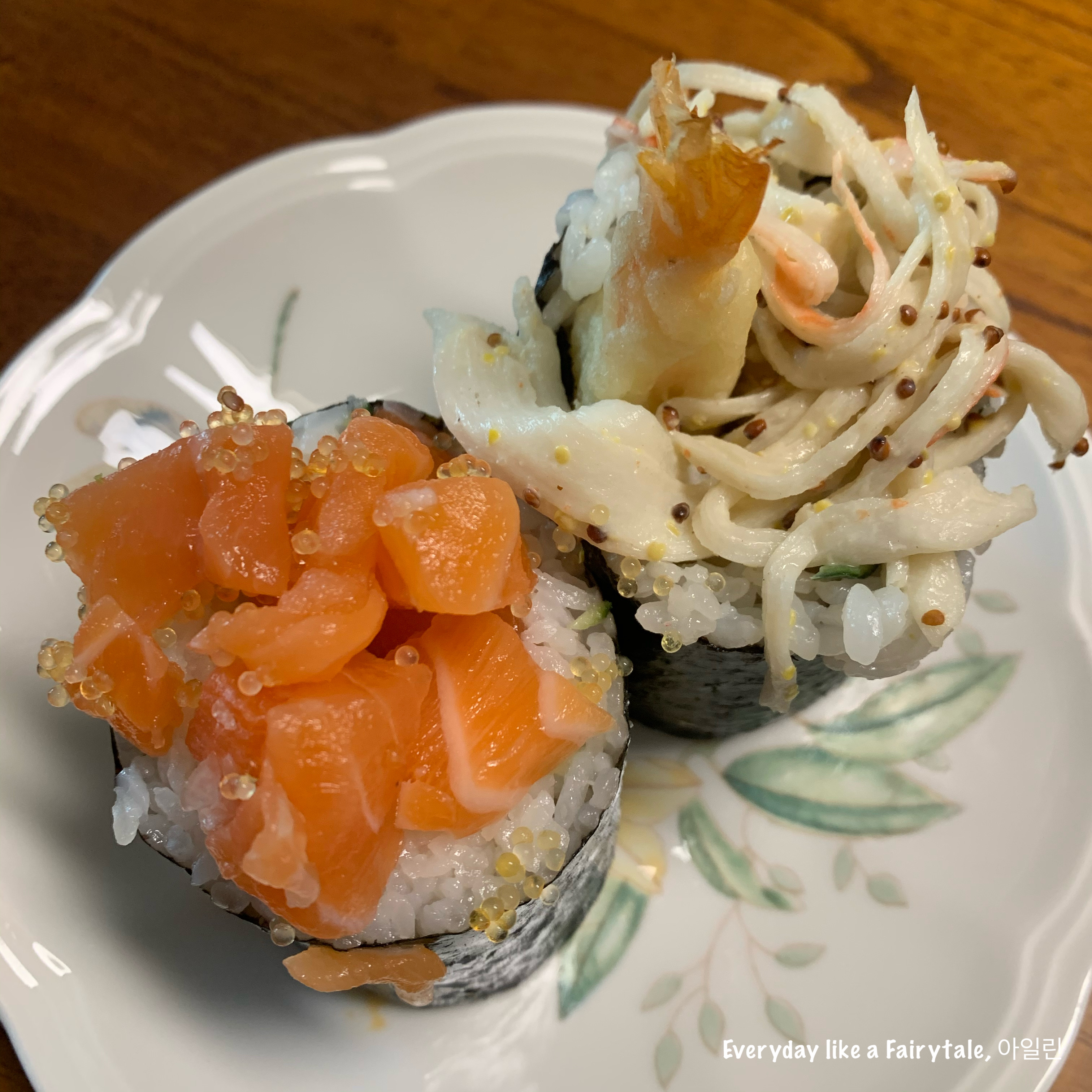 잘라먹기 위해 해부한 게살새우 스시롤!!!