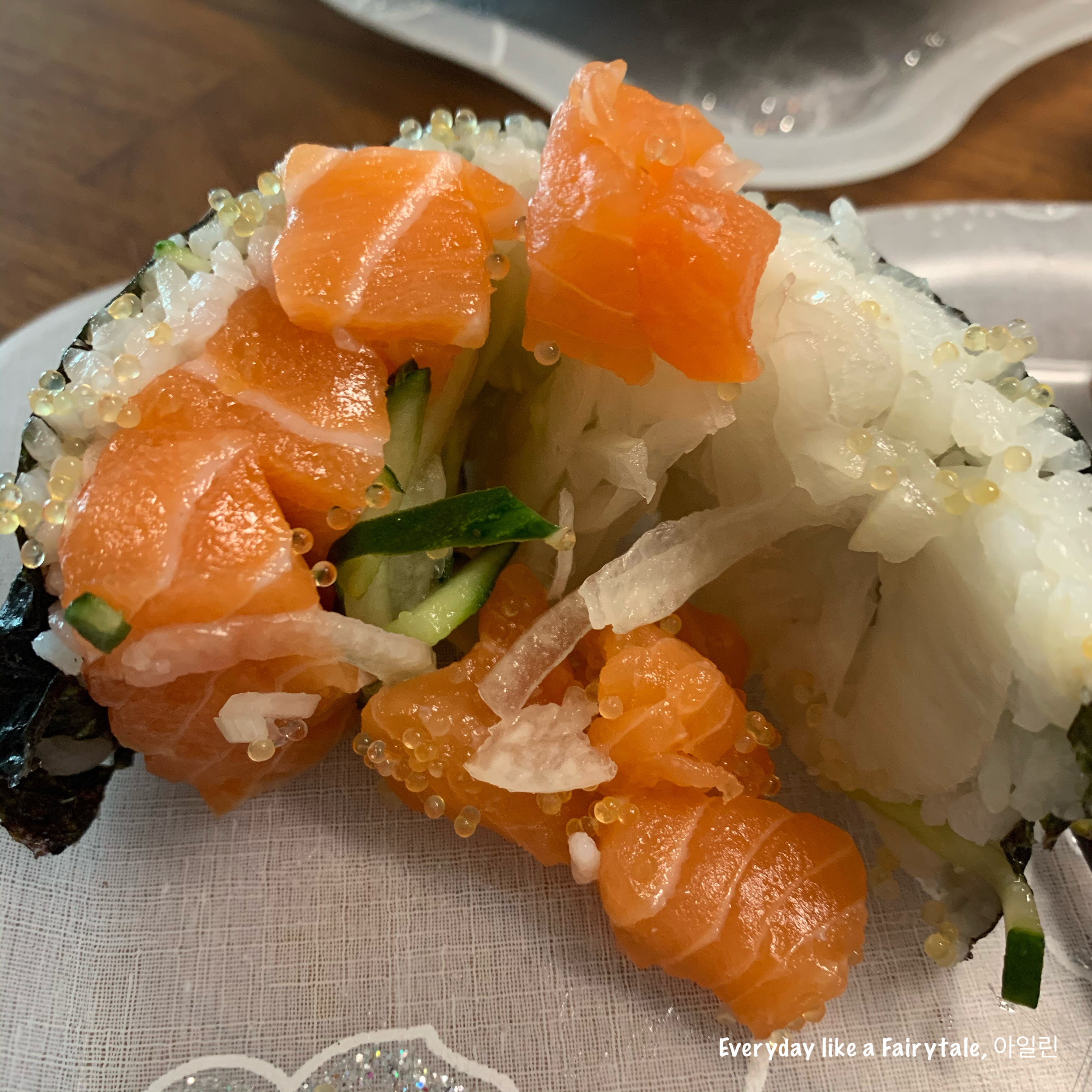 연어 스시롤 안에는 혜자스러운 양의 연어와