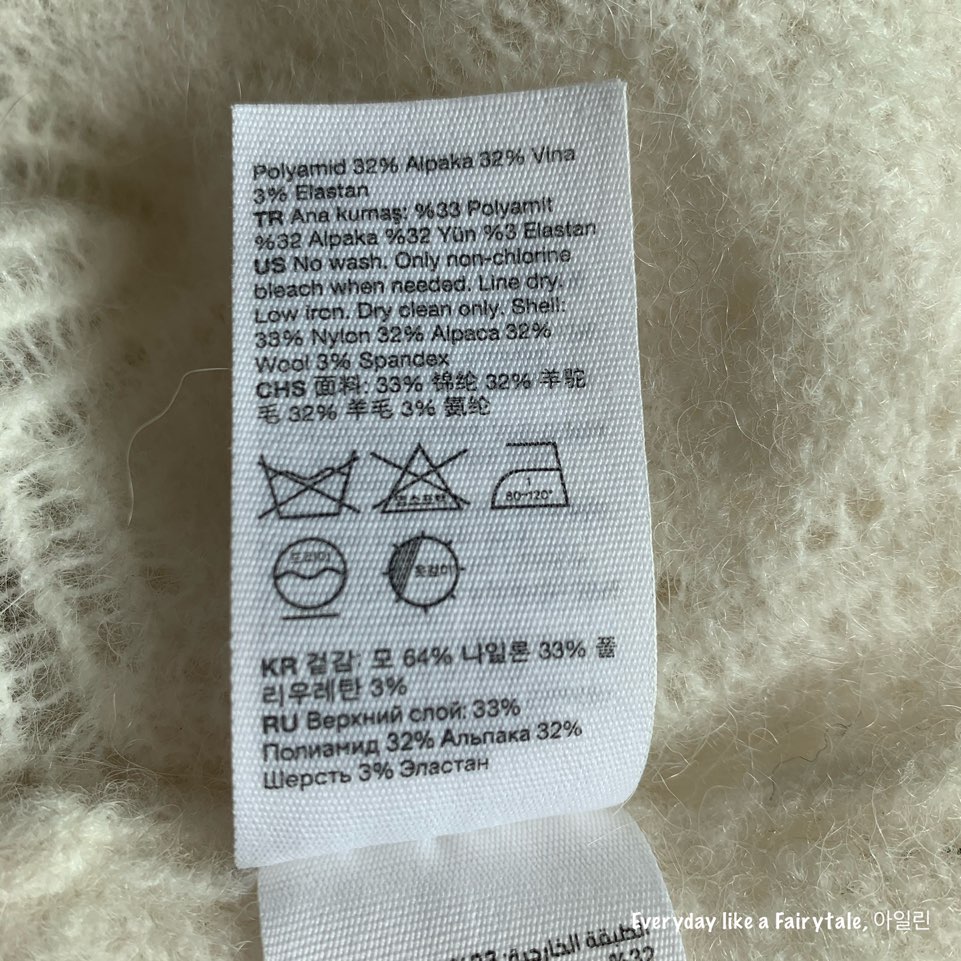 소재: 울 62%, 폴리아미드 35%, 엘라스테인 3%