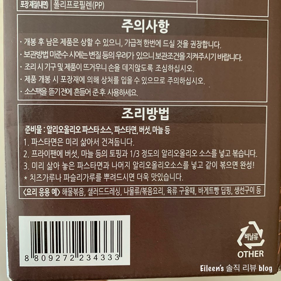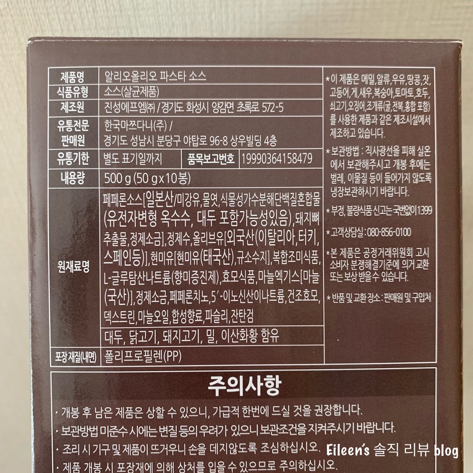 알리오 올리오 소스 한 팩과 코스트코에서