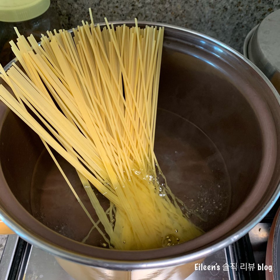 그리고 면이 다 삶아지기 전에 프라이팬을